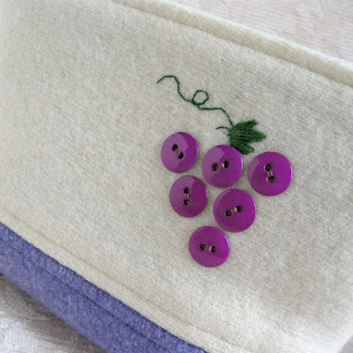 Just finishing up some projects this afternoon and I now have a new set of my "button fruit" zip pouches listed in my shop. I love making these cute zipper pouches from felted recycled sweater wool. I added the "cherries" and "grapes" from my button stash, combined with some embroidery leaves and stems.